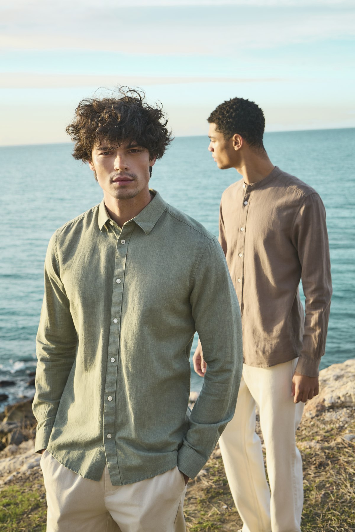JJ REBEL JJ REBEL Moss Sunny kortærmet hør skjorte - Moonbeam